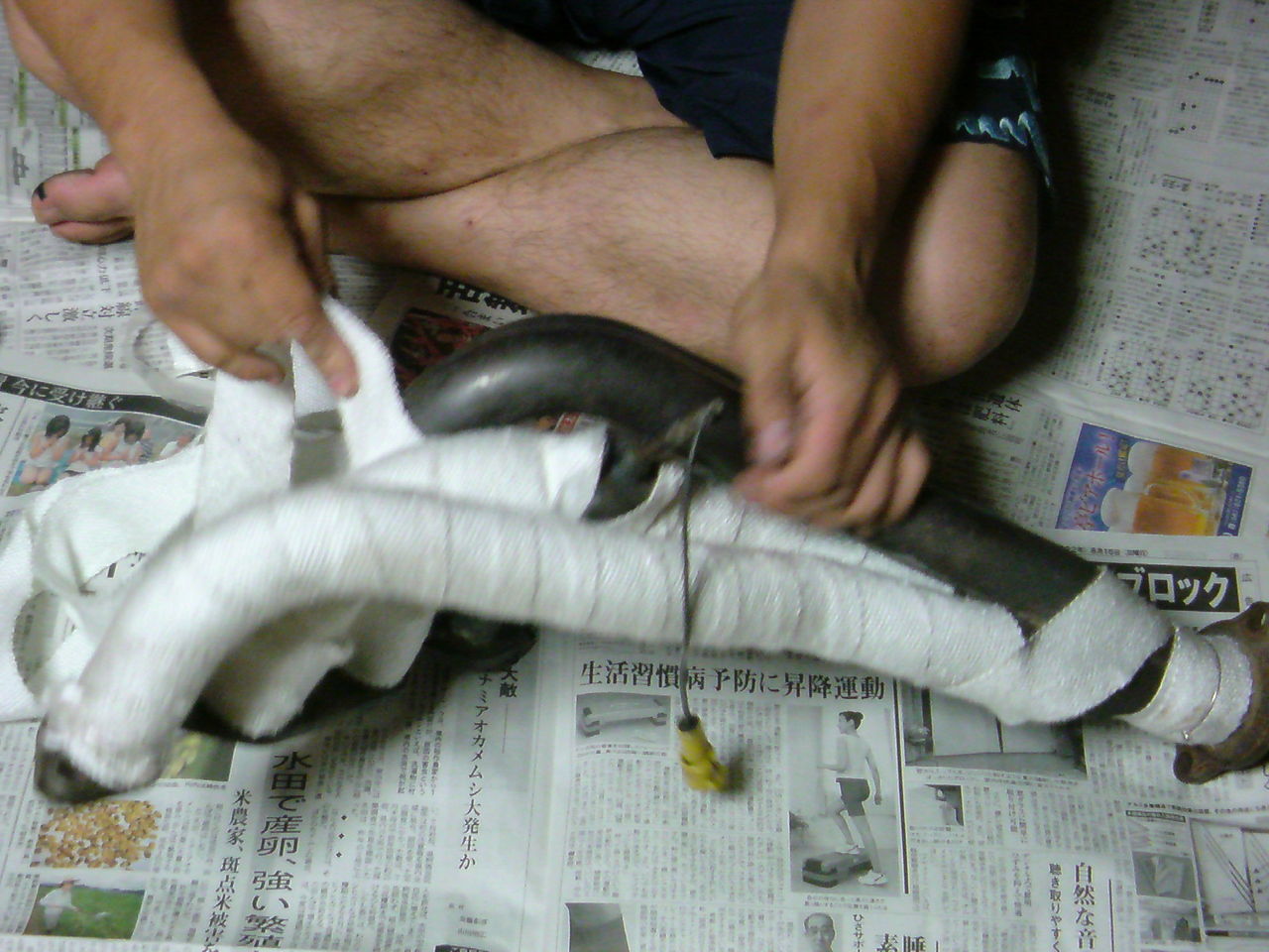 タコアシと配管が近いのでタコアシに耐熱バンテージを巻き 30分程真空引き